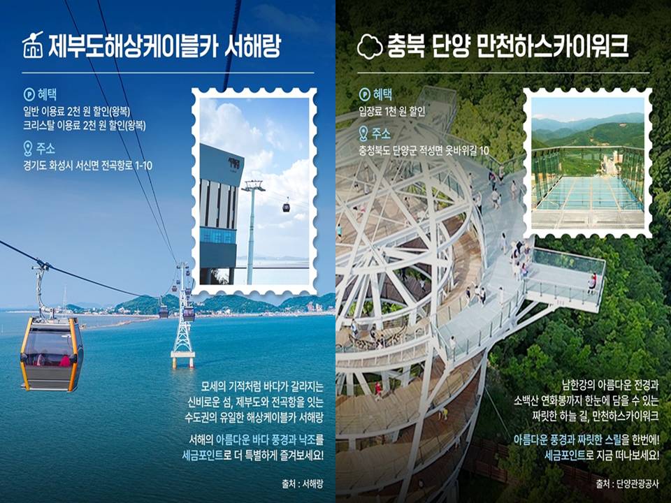 제부도 해상케이블카, 단양의 스카이워크, 그리고 천연 동굴인 온달동굴까지. 이처럼 전국 각지의 인기 명소에서 세금포인트를 활용한 할인 혜택을 누릴 수 있다는 것은 성실한 납세가 단순한 의무를 넘어 실질적인 '생활 속 재테크'로 이어지고 있음을 의미합니다.