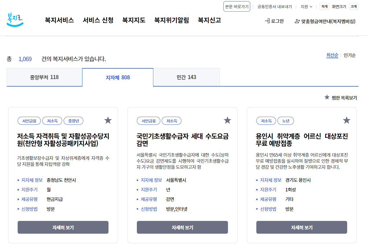 - 온라인 신청: 복지포털 '복지로' 홈페이지나 앱을 통해 집에서도 간편하게 신청이 가능합니다.