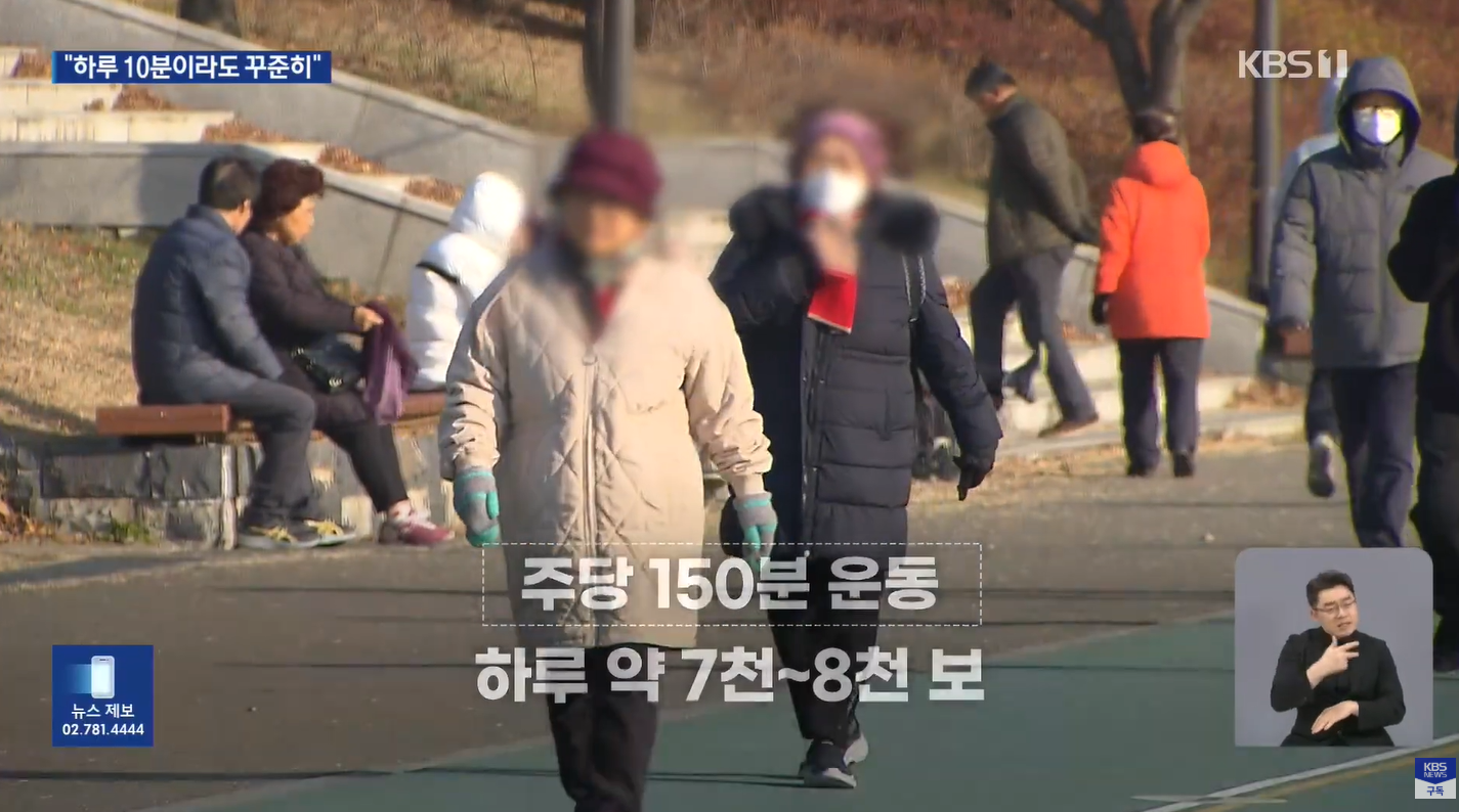 - 걸음수 조절: 주당 150분 운동을 걷기로 환산하면 하루 약 7,000~8,000보 정도입니다. 나이에 따라 무릎에 무리가 가지 않도록 걸음수를 유연하게 조절하세요.